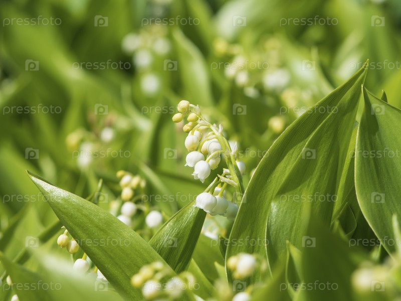 Белые ландшафты на поле в лесу в солнечный день.Белые цветы ландшафта (лат. Convallaria) Выборочный фокус.Природный фон с цветковыми ландшафтами