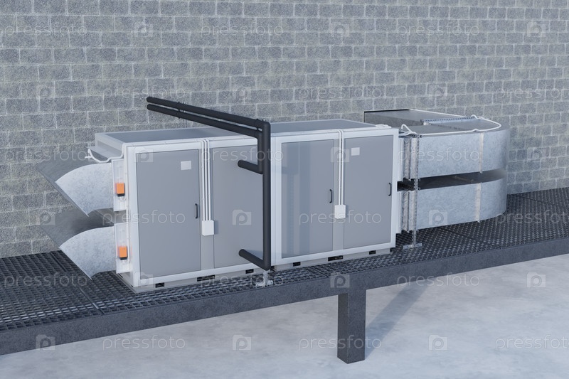 На фоне стеновой вентиляционной установки на крыше 3d