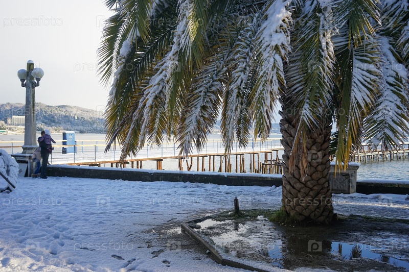 Зима в субтропической стране, снег на ладонях