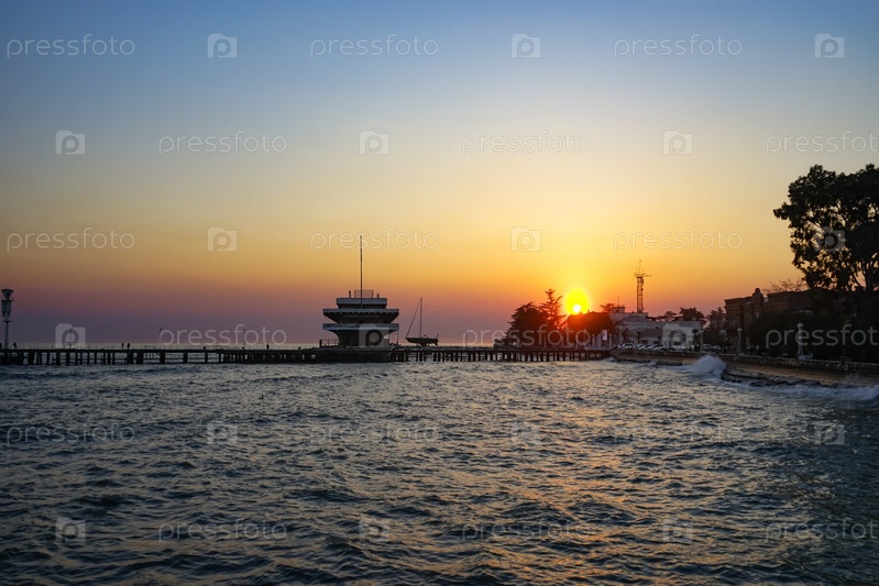 Сухуми, Абхазия-14 января 2015 г.: Морской пейзаж с видом на город
