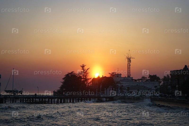 Сухуми, Абхазия-14 января 2015 г.: Морской пейзаж с видом на город