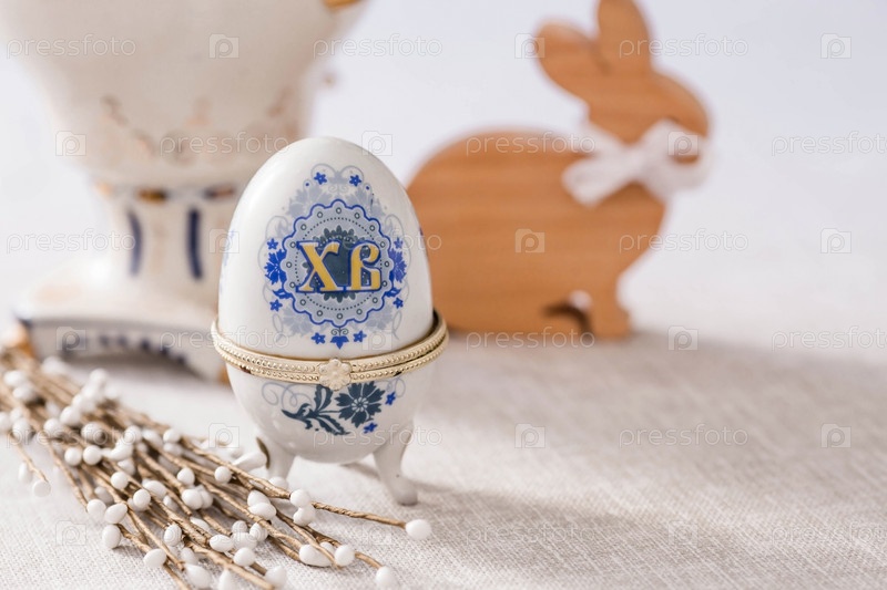 Большая яичная коробка с надписью XB и верба на льняной салфетке на столе.Концепция светлого праздника Пасхи и Вербного воскресенья