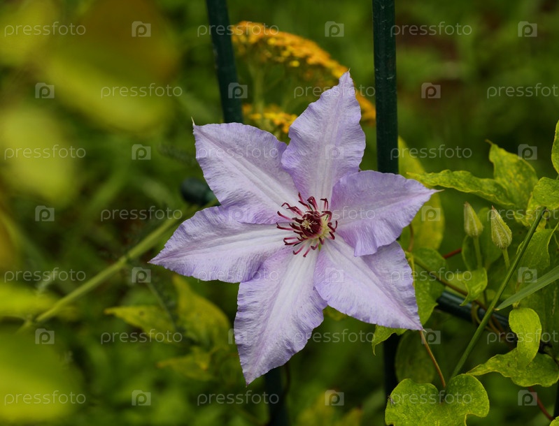 Клематис крупноцветковый крупным планом бледно-сиреневого цвета
