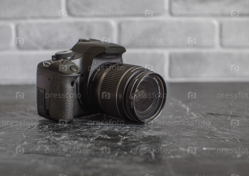 Старая изношенная зеркальная камера с объективом «кит» 18-55 мм