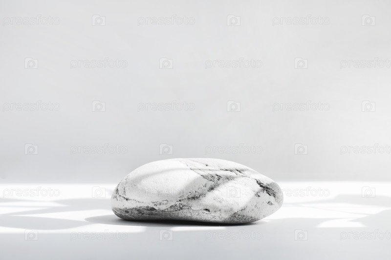 Фон для косметики натурального бело-серого цвета. Каменный подиум на белом фоне с жесткими тенями