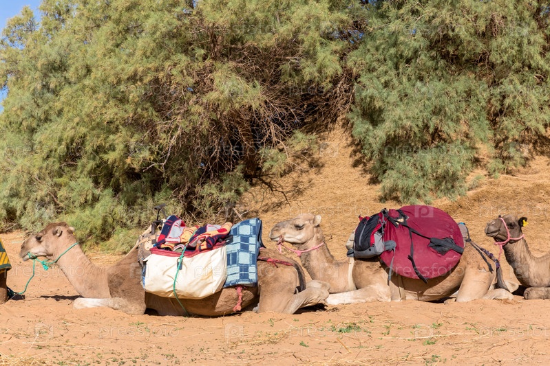 Верблюды загружены в пустыне Сахара, Марокко