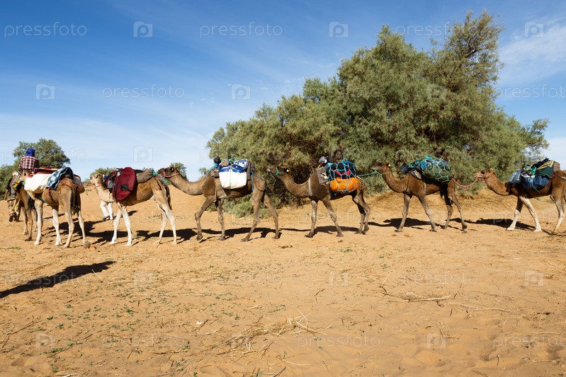 Караван верблюдов в пустыне Сахара