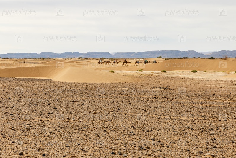 Караван верблюдов в пустыне Сахара, Марокко. Африка