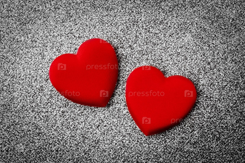 День Святого Валентина красное сердце на сером серебряном фоне. Праздничная открытка с копией пространства