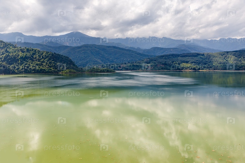 Река на фоне гор и облачного неба, река Намна, провинция Лайчау, Вьетнам
