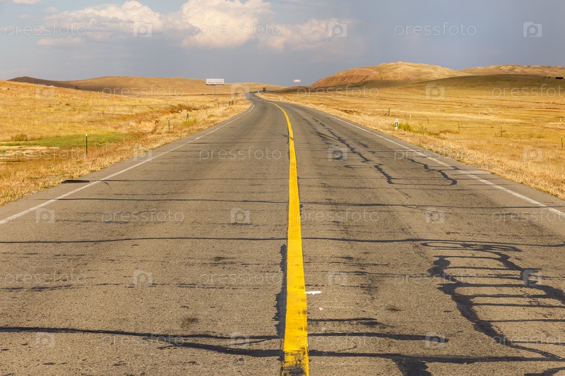 Желтая сплошная полоса на асфальтированной дороге, красивый пейзаж, Внутренняя Монголия, Китай