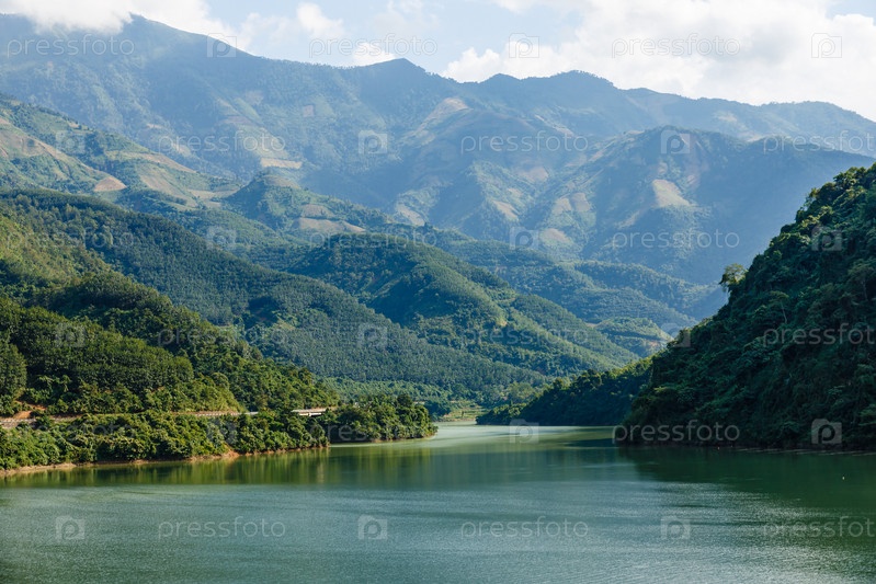 Река и облачное небо, красивый пейзаж, провинция Лайчау, Вьетнам, река Намна