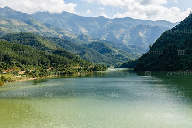 Река и облачное небо, красивый пейзаж провинция Лайчау Вьетнам Нам на Ривер