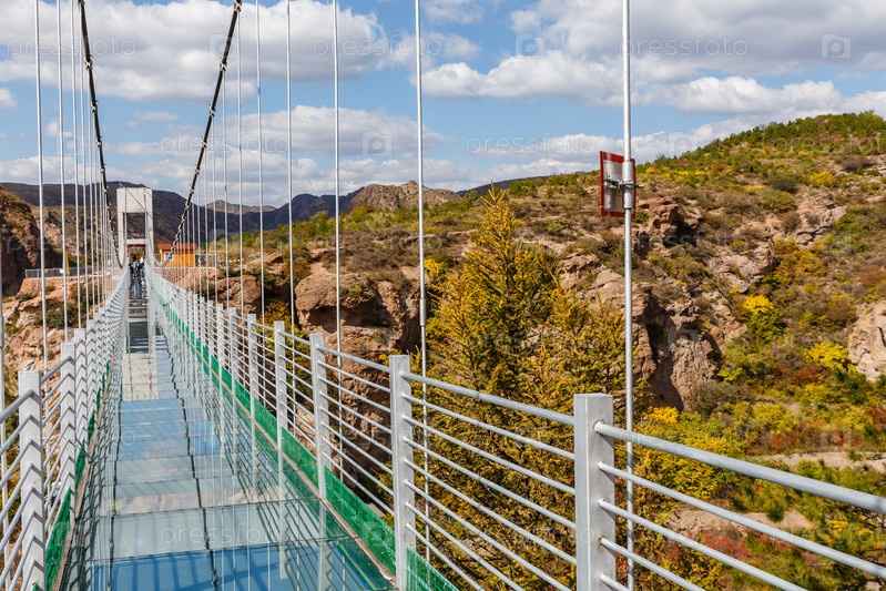 Стеклянный подвесной мост в горах, Китай