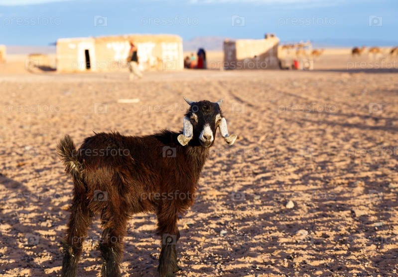 Коза стоит в пустыне Сахара, Марокко