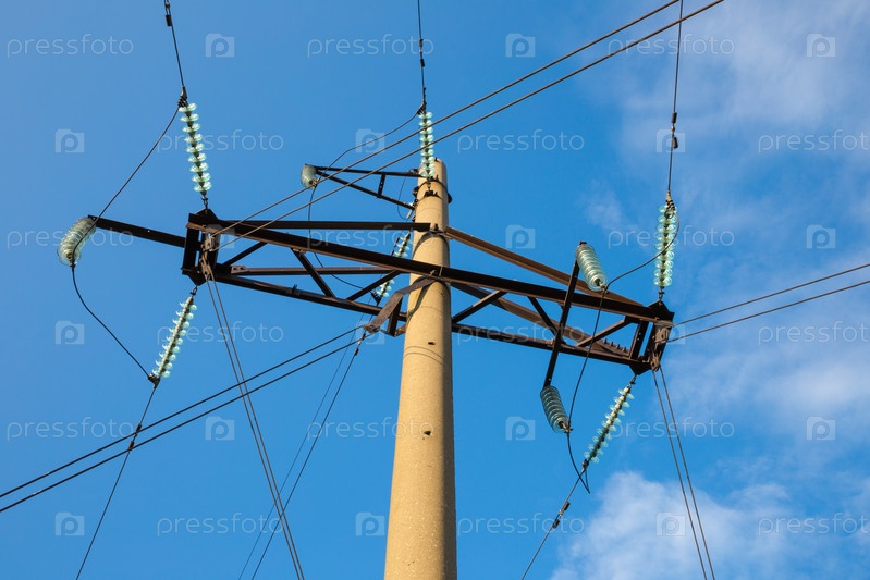 Башня ЛЭП на фоне голубого неба