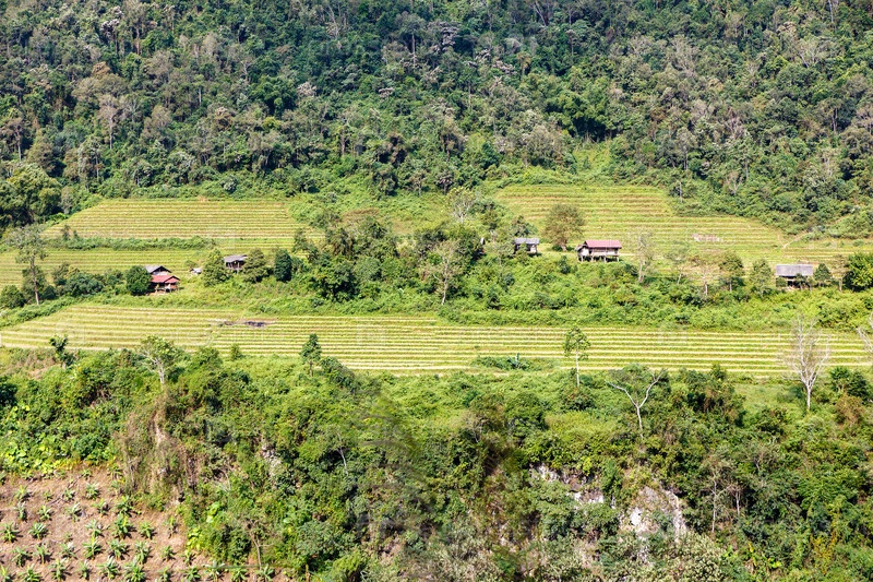 Поля и джунгли на склоне горы, красивый пейзаж, провинция Лай Чау, Вьетнам