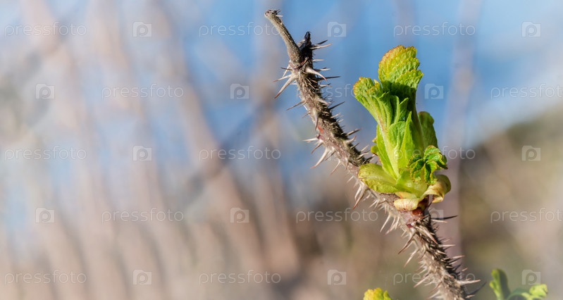Молодые листья на дереве. Весенний пейзаж. Цветущая ветвь