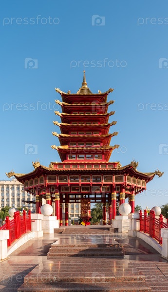 Элиста, Россия. Вид на пагоду Семи дней в крупнейшем городе Республики Калмыкия