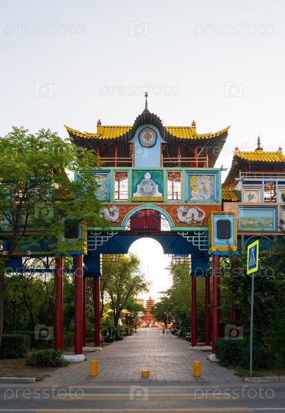 Элиста, Россия - 12 сентября 2017 г.: Буддийское архитектурное сооружение "Альтн Бош" или Золотые ворота в Республике Калмыкия