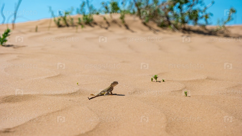 Вид маленькой агамидной ящерицы в пустыне Республики Калмыкия Phrynocephalus mystaceus степной вид ящериц