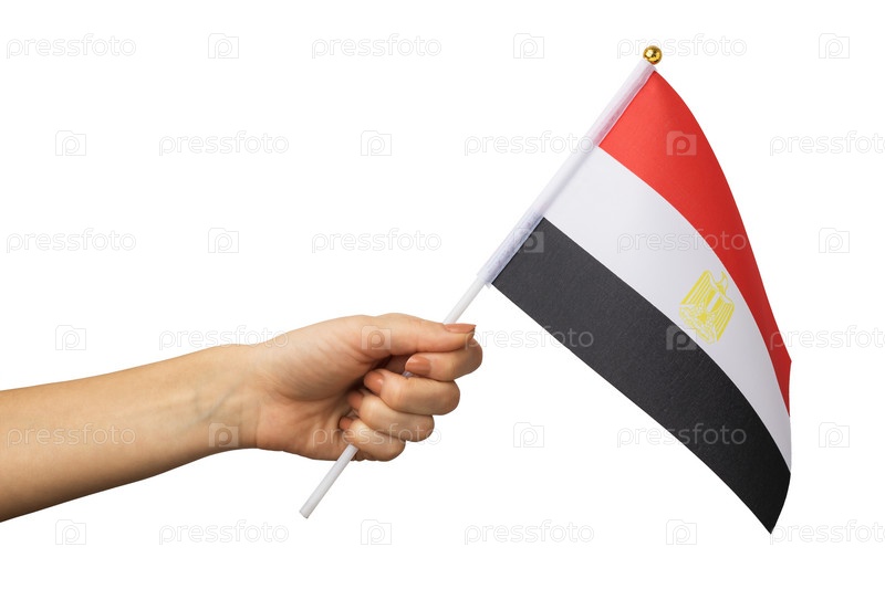 Рука держит флаг Египта на белом фоне, шаблон для дизайнеров