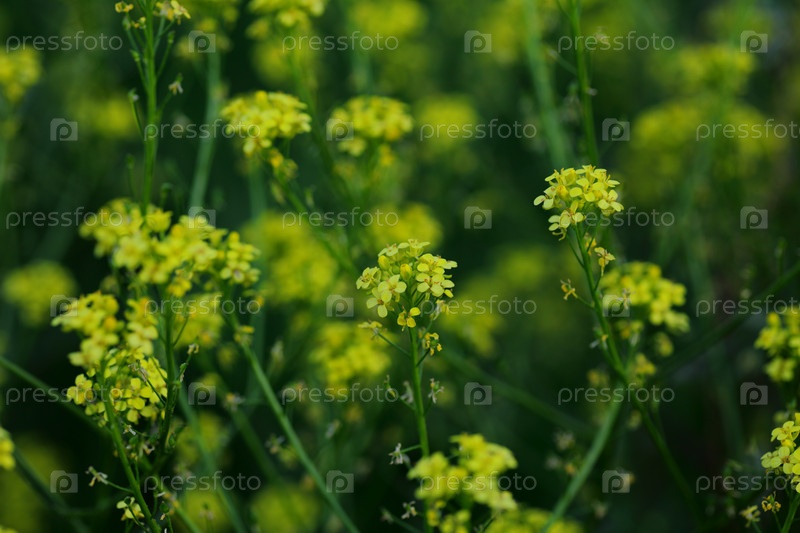 Поле сурепки летом. Макросъемка