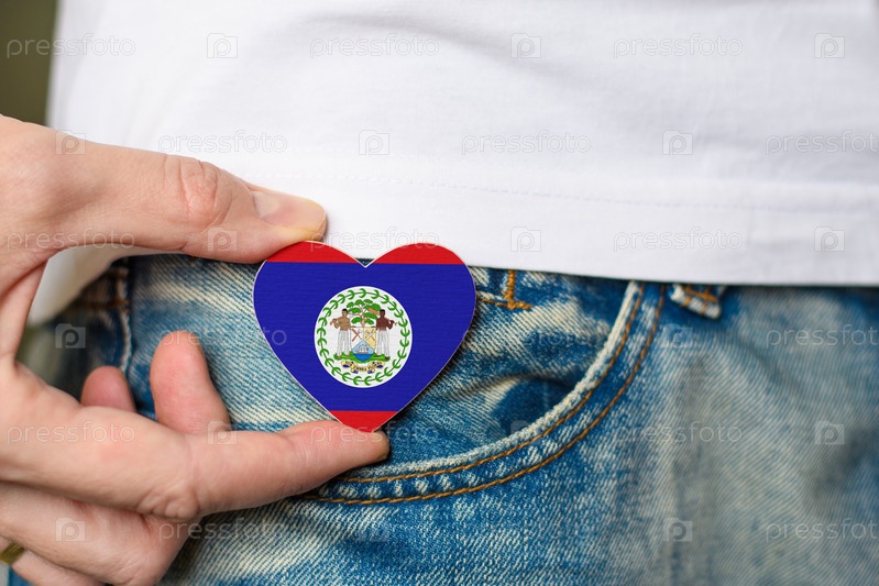 Патриот Белиза! Деревянный значок с флагом Белиза в форме сердца в мужской руке