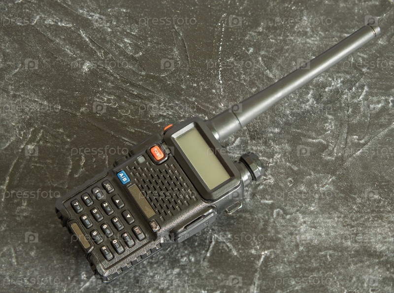 Черная портативная радиостанция на темном бетонном фоне