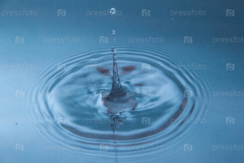 Капля ударилась о воду и замерла в воздухе. Круги на голубой глади воды