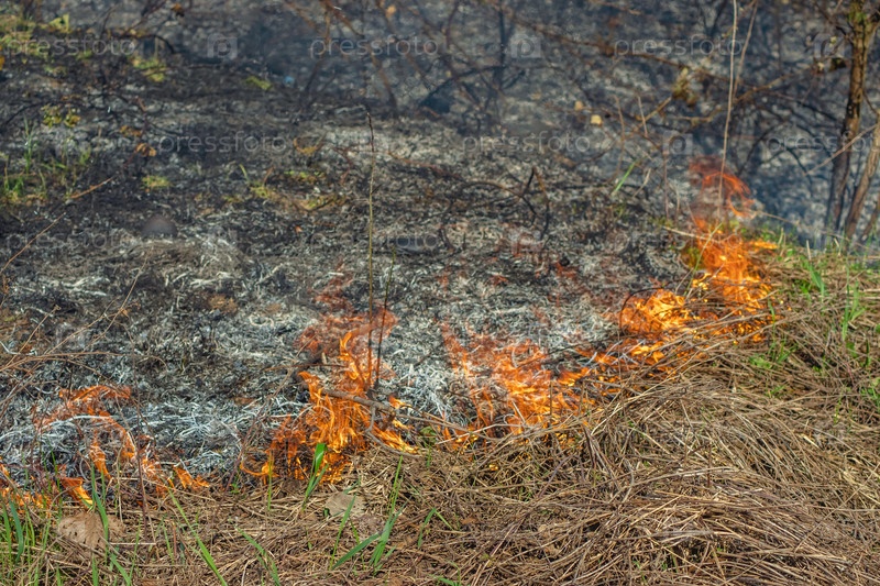Сухая трава сгорает, оставляя после себя обугленную землю. Начало чрезвычайной ситуации