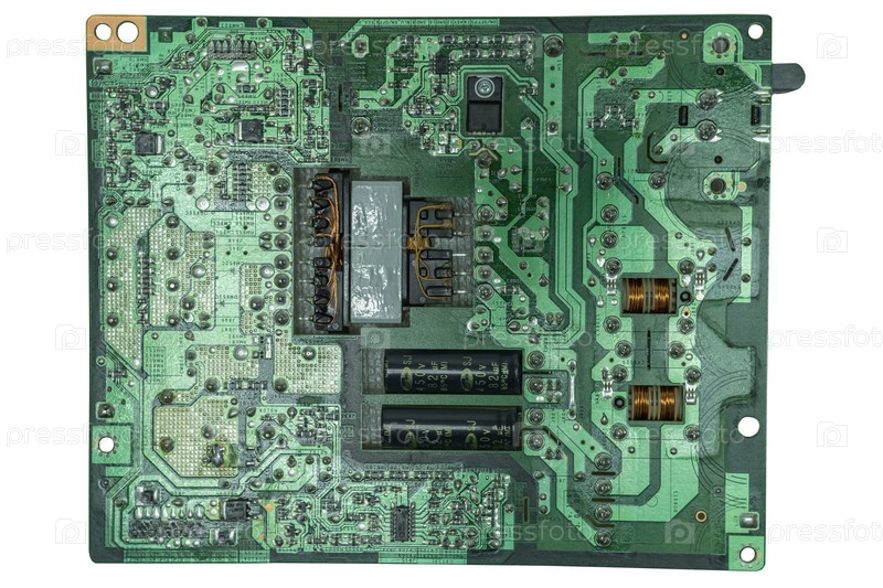 Современная плата питания с инвертором для ЖК-телевизора. Вид со стороны пайки. Отдельный на белом фоне