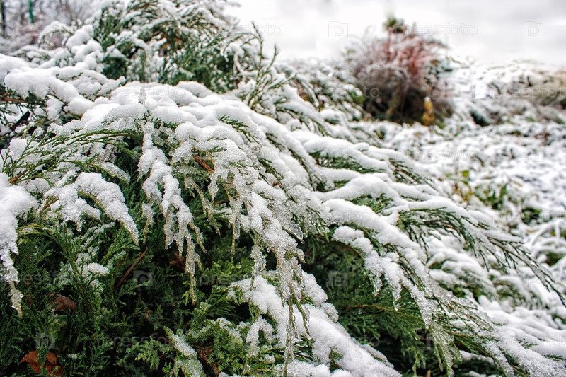 Ветки можжевельника покрытые снегом