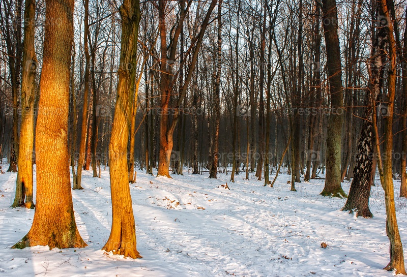 Зимний закат в лесу