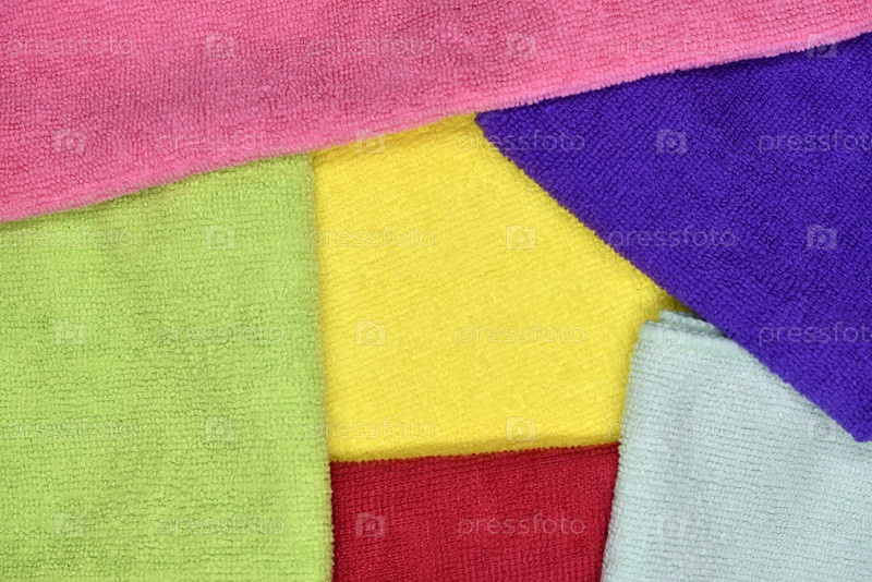 Разноцветные полотенца, уложенные друг на друга. Цветные махровые полотенца. Фон из разноцветных тряпок