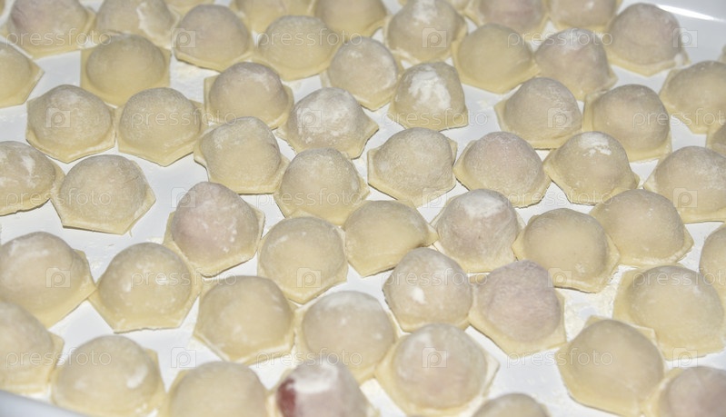 Свежеприготовленные пельмени крупным планом. Мясные полуфабрикаты