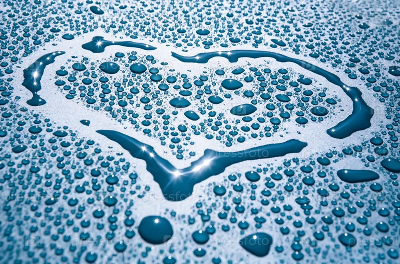 Рисунок в форме сердца на поверхности стекла, покрытой каплями воды. Заявление о любви. Абстрактный. Фон. Крупный план