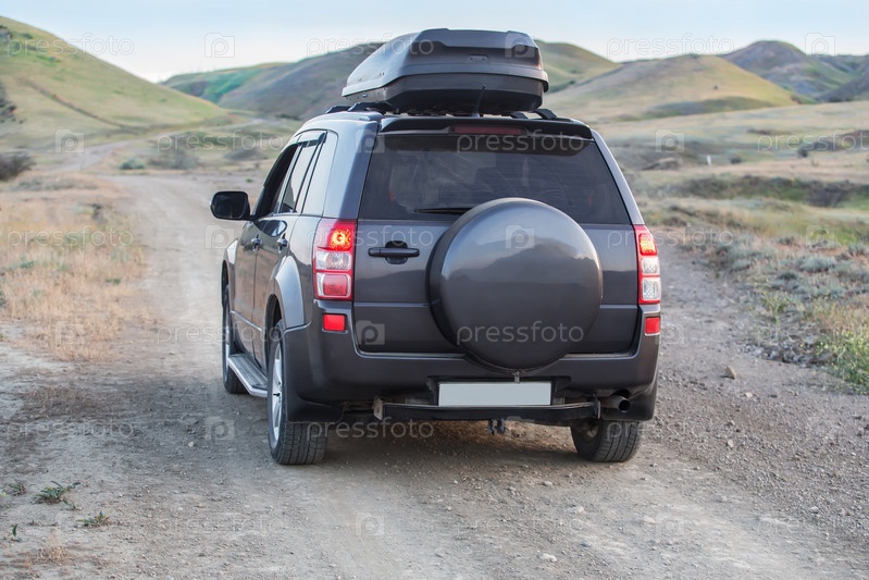Внедорожник едет по грунтовой дороге