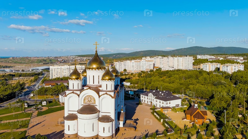 Геленджик, Россия. Собор Андрея Первозванного. Андреевский парк, вид с воздуха