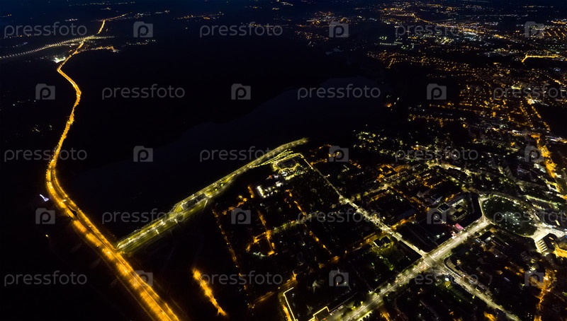 Калуга, Россия. Ночной город. С высоты птичьего полета