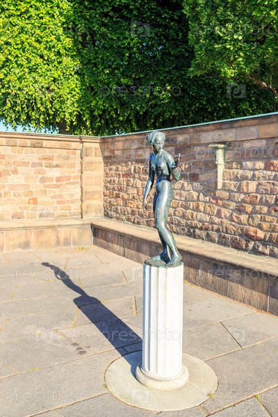 Стокгольм, Швеция. Скульптура обнаженной девушки, смотрящей на цветок возле центральной ратуши Стокгольма