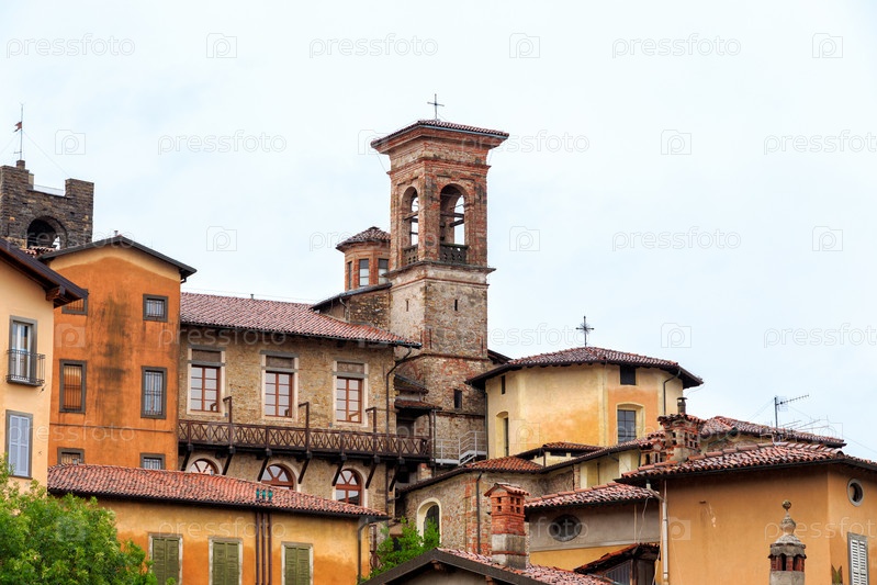 Бергамо, Италия. Крыши домов. Историческая часть города. Верхний город. Дождливая погода