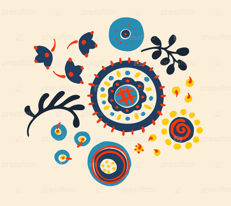 Набор этнических элементов. Бордюр представляет собой полосу с цветами, листьями, ветками, вензелями. Народная вышивка. Славянский, украинский, русский мотив. Хохлома, матрешка, дымковская игрушка. Мексиканский, индийский, цыганский ковер. Вязаное кружево