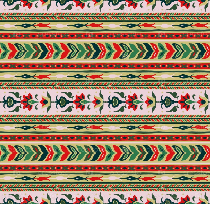 Геометрический фольклорный орнамент икат. Племенная этническая векторная текстура. Бесшовный полосатый узор в стиле ацтеков. Рисунок племенной вышивки. Индийский, скандинавский, цыганский, мексиканский, народный узор