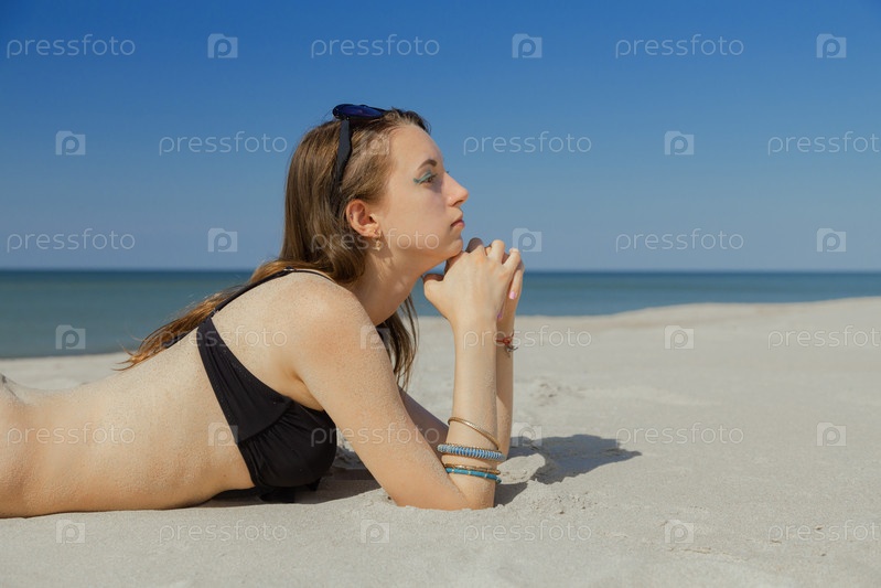 Молодая женщина загорает