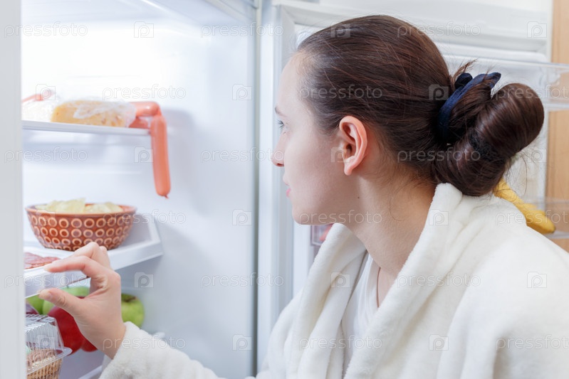 Женщина возле холодильника
