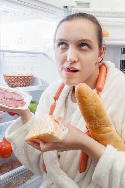 Женщина возле холодильника