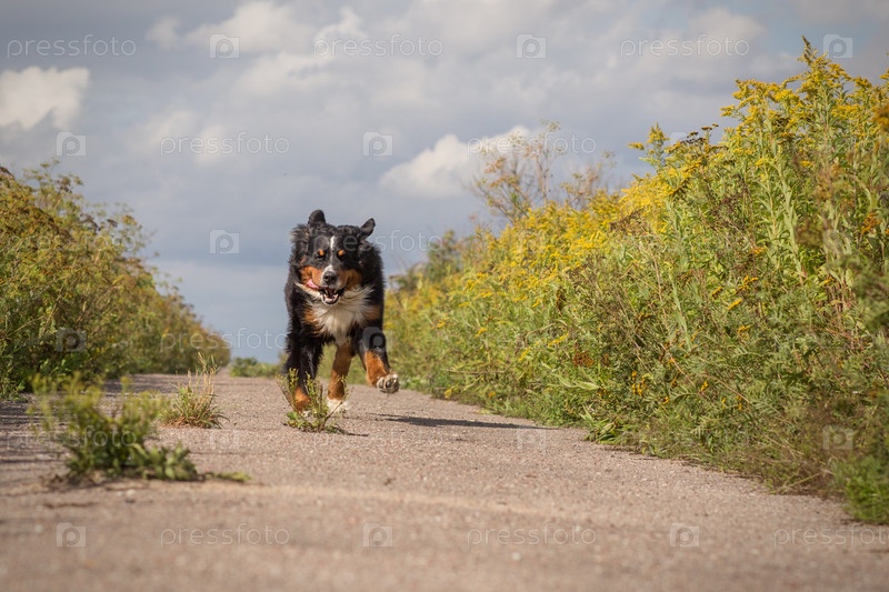 Счастливая собака бежит