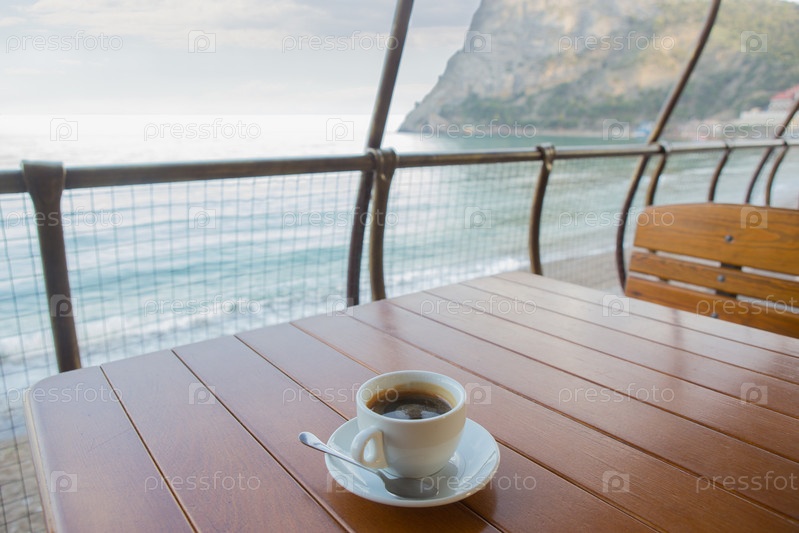 Чашка кофе на столе летнего кафе