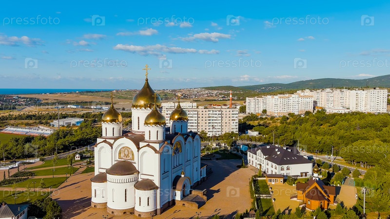 Геленджик, Россия. Собор Андрея Первозванного. Андреевский парк, вид с воздуха